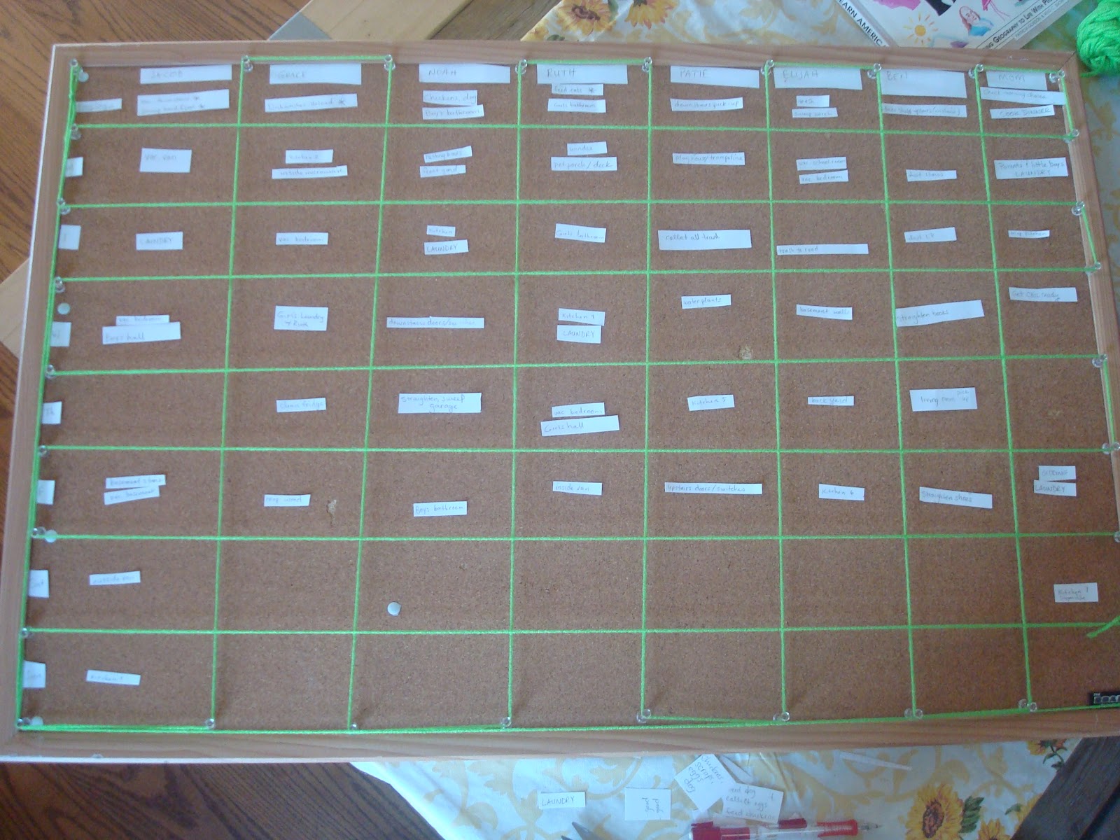 I'm working on a new and improved chore chart. I used to have a good one back before we sold our house and moved five times. The kids still do their chores, but it is extremely hard for me to remember who does what. Except kitchen days, which fall according to birth order. That one's easy. But I'm afraid these kids are getting over on me and I need a new system. I'll let you know how that goes...