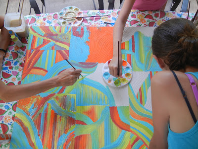 We all sat around the painting, working on our own areas... chatting and laughing and of course comparing techniques!